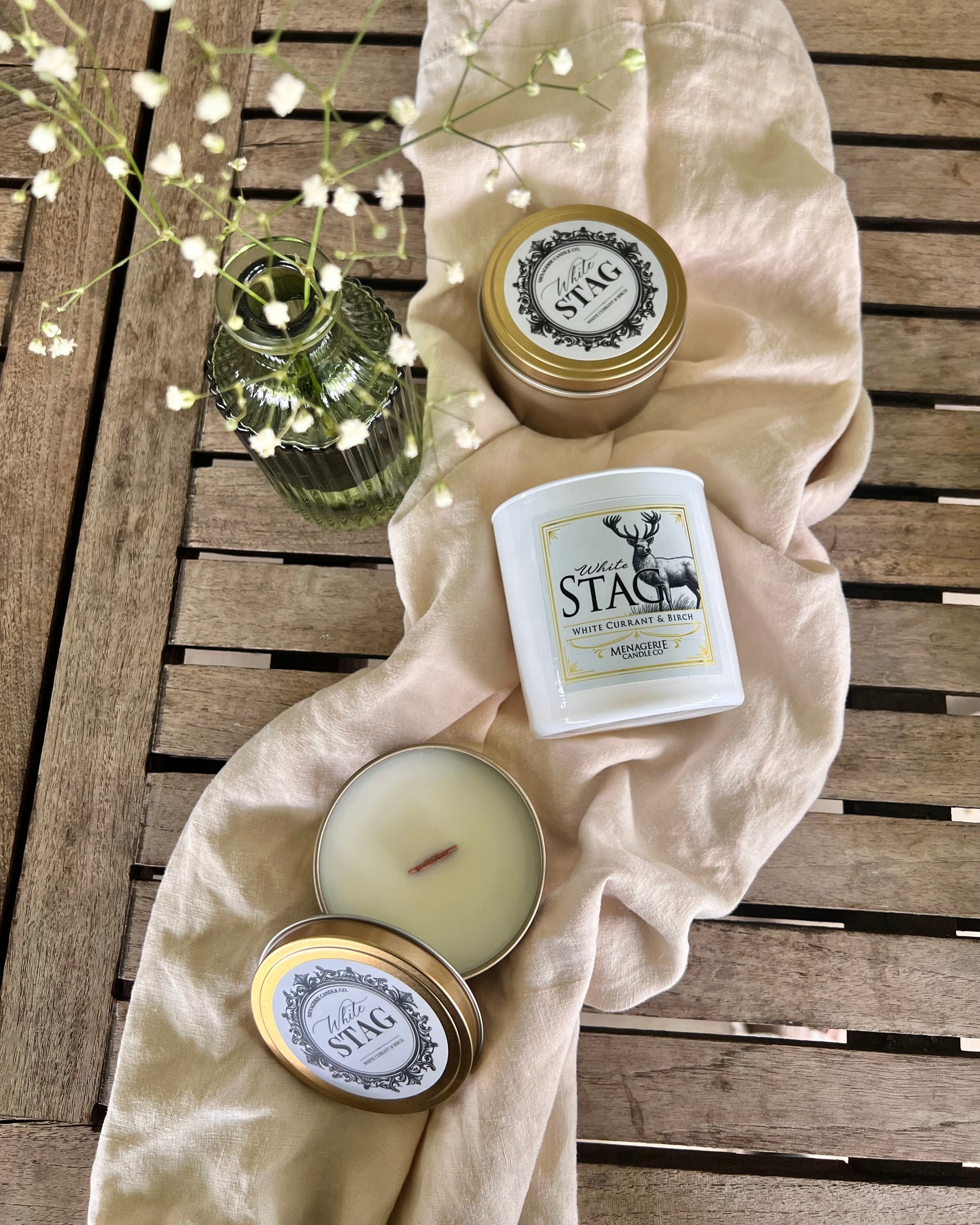 White Stag delivers a bespoke and luxurious fragrance experience, combining the crisp brightness of White Currant with the earthy sophistication of Birch Wood. This carefully curated blend strikes the perfect balance between freshness and warmth, creating a refined aroma that soothes the senses and exudes serenity.